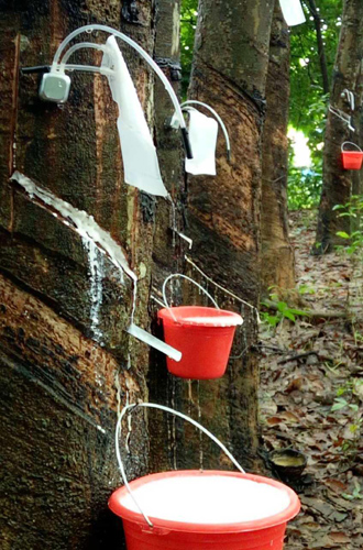 2013年一天,一个偶尔的机会王家清听到有关“超丰收”技术的消息,他立刻对此产生了浓厚兴趣,回家后茶饭不思,冥思苦想,决定到现场实际考察了解一番再作决断。考察中他多方查看、论证、比较,发现“超丰收”技术果然神奇,从此他的兴趣更大了,率先在自家胶园安装了“超丰收”技术设置,进行反复试验。两三个月下来,结果令他大为震惊,割胶收入翻番,生活得到改善,全家人洋溢在幸福的氛围之中。