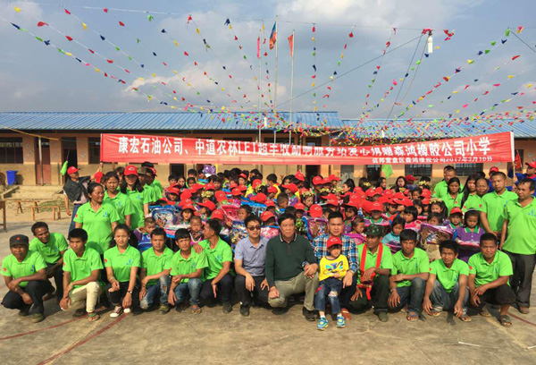 3月10日,中道农林公司孟啊服务站携手康宏石油公司组织开展献爱心公益活动,来到云南省森鸿橡胶公司营盘希望小学,为山区的孩子们捐赠了学习用品。