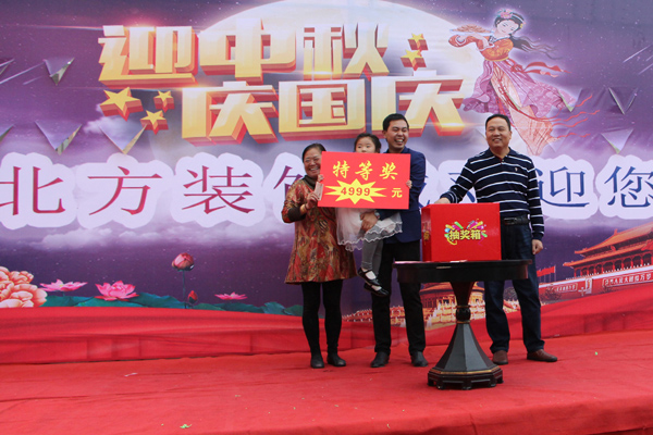 新北方装饰城继今年五・一“把汽车开回家”、七・一“东南亚双人浪漫之旅”消费活动之后,又在“国庆”“中秋”双节期间隆重推出了“感恩钜惠,双节同庆――买建材,送豪礼”有奖促销活动。10月1―8日活动期间,新北方装饰城所在地――中道大厦又一次成了众多消费者关注的焦点,人们前往休闲、观赏、抽奖、购物,播洒了希望,也收获了喜悦。八天活动,商场客流量与商户销售额都有了明显增长。